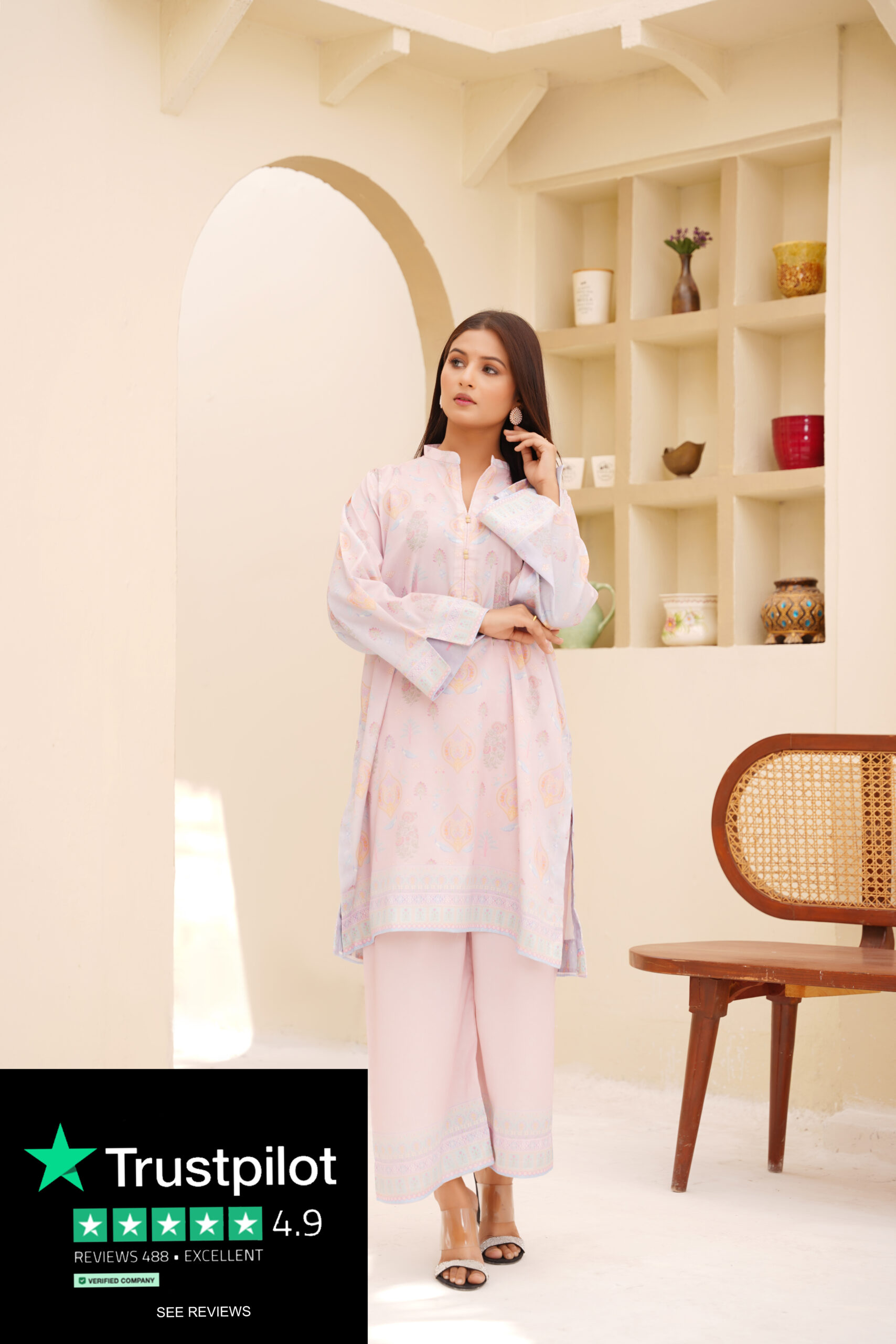 Exude refined charm with Sophia’s Closet’s Blush Radiance Printed Silk 2-Piece. Crafted from premium silk, this ensemble offers a luxurious drape and a feather-soft feel against the skin. The subtle blush pink base is beautifully complemented by intricate pastel motifs and a finely detailed border, adding a touch of timeless grace.